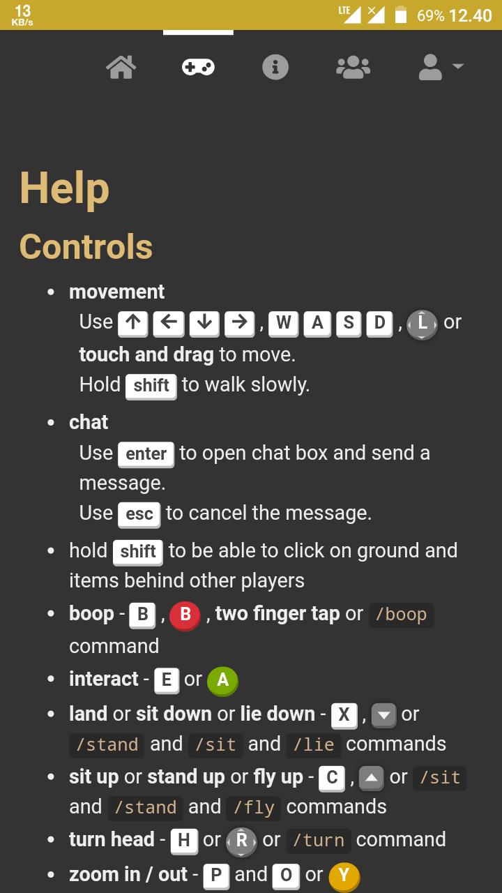 D'autres choses dont vous avez seulement besoin de saisir les commandes dans le chat, par exemple la commande pour vous asseoir ou vous tenir: / s'asseoir